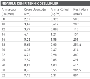 Nervürlü İnşaat Demiri Genel Özellikleri